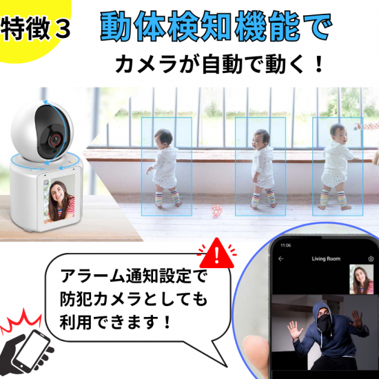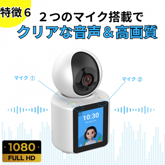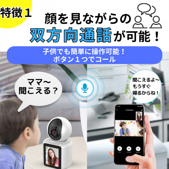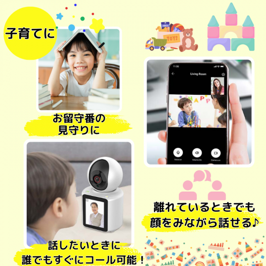 見守りカメラ 防犯カメラ 双方向通話 ビデオ通話 WiFi接続 お留守番 子供 高齢者 介護 見守り パンチルト 暗視可能 スマホから監視 ビデオ通話見守りカメラ