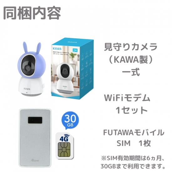 KAWA製見守りカメラ【WiFiモデムセット】・KAWA製見守りカメラとWiFiモデムセット商品です